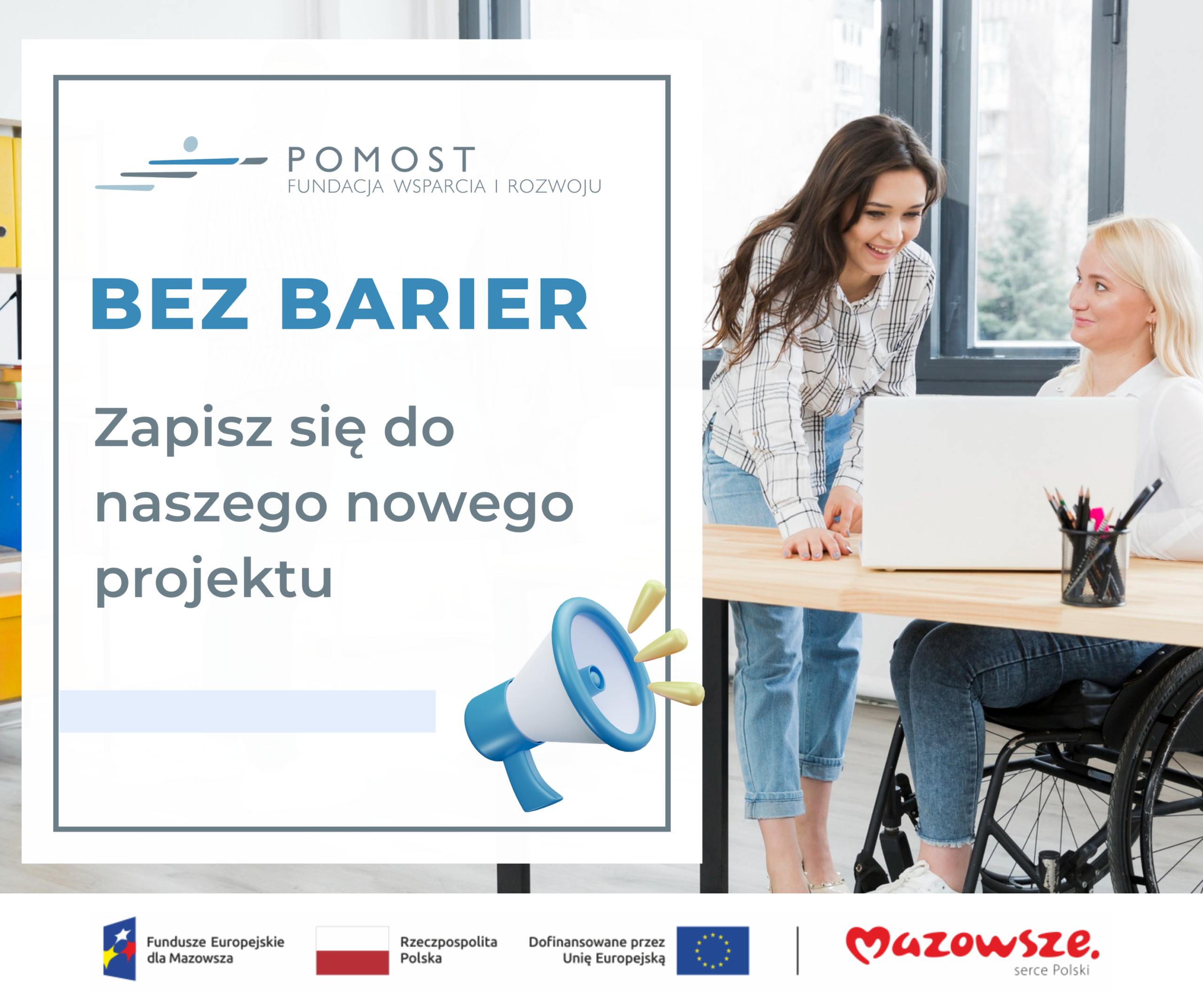 ✨ Fundacja Wsparcia i Rozwoju „POMOST” uzyskała dofinansowanie ze środków Europejskiego Funduszu Społecznego Plus na realizację projektu pt. „Bez barier”. 📅 Okres realizacji: 01.10.2026 – 31.10.2026 💶 Wartość dofinansowania UE:...